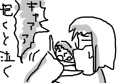 なかなか泣き止まず暴れるのでたいへんである。